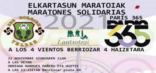 BKE Korrika Taldea ha organizado para este domingo 21 de noviembre cuatro Maratones Solidarias para recoger alimentos para el PARIS 365 y para colaborar con la Asociación Lan...