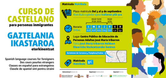 Gaztelania ikastaroa etorkinentzat. Matrikulazio epea - irailaren 3tik 9ra. Non? - José María Iribarren helduentzako oinarrizko hezkuntzarako zentroa.